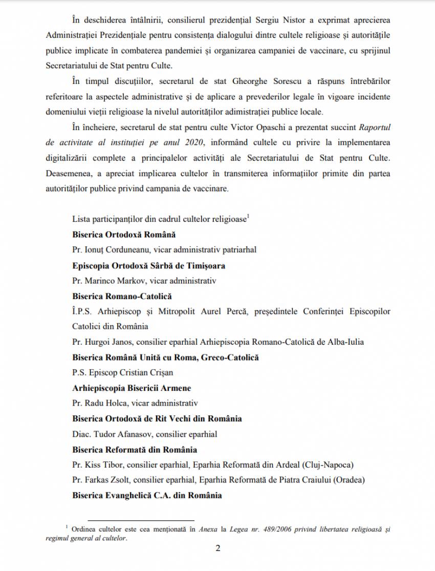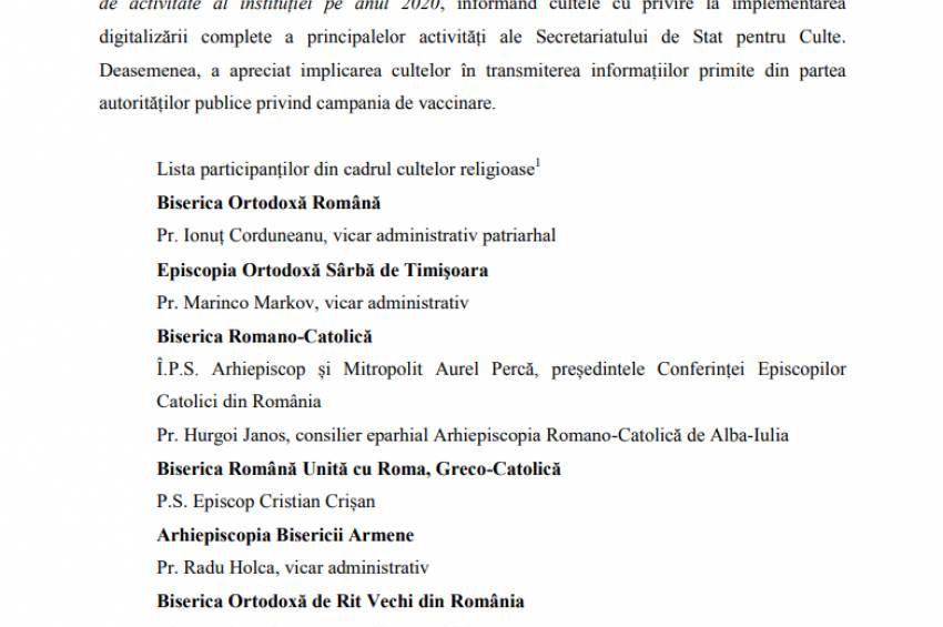 COMUNICAT ◉ O nouă întâlnire între reprezentanții cultelor religioase și cei ai autorităților publice