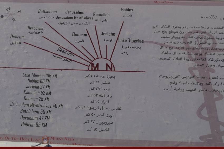 Ridicându-se la o altitudine de 700 de metri, deasupra văii Iordanului, Muntele Nebo oferă ochiului o minunată priveliște asupra Țării Sfinte.