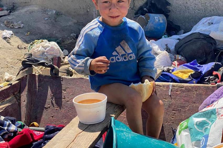 În poze sunt copiii dintr-o familie de nouă membrii, doi părinți și șapte prunci. Nici n-au apucat bine să ia mâncarea că au și desfăcut-o ca să mănănce.