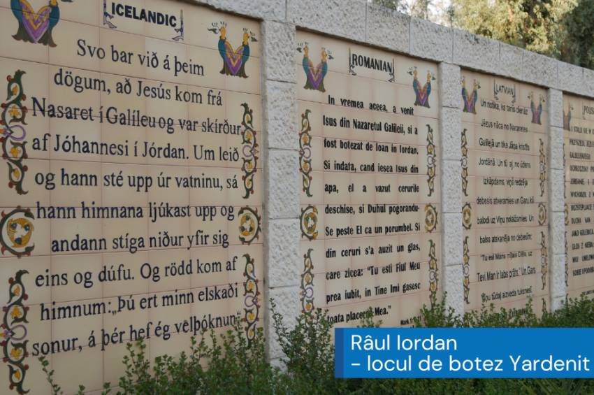 Râul Iordan amintit în Sfânta Scriptură de 180 de ori este cel mai mare râu din Israel și curge de la Muntele Hermon, trece prin Marea Galileii și își continuă drumul până la Marea Moartă. Cel mai minunat eveniment care s-a petrecut